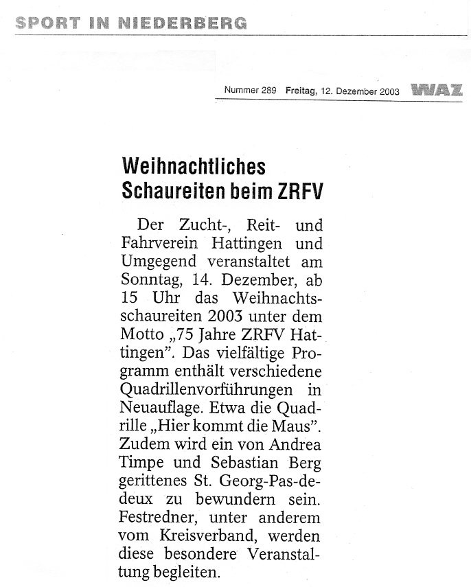 Weihnachtliches Schaureiten beim ZRFV