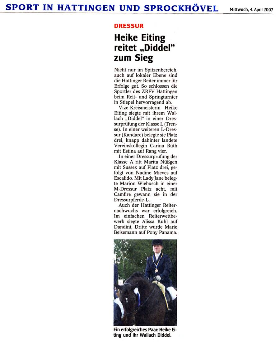Heike Eiting reitet 'Diddel' zum Sieg